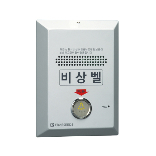 위험지역 및 화장실(장애인, 여성 화장실)에 설치하며 위급상황 발생 시 버튼을 누르면 자체 내장된 경보음이 발생하며 비상벨 중계기와 RS-422로 음성 및 제어 통신을 하며, 중계기는 RS-485 통신으로 MAINCONTROLLER로 전송되며, 관제센터 근무자와 음성으로 양방향 통화를 하여 위급상황을 쉽게 전달하여 도움을 요청할 수 있습니다.