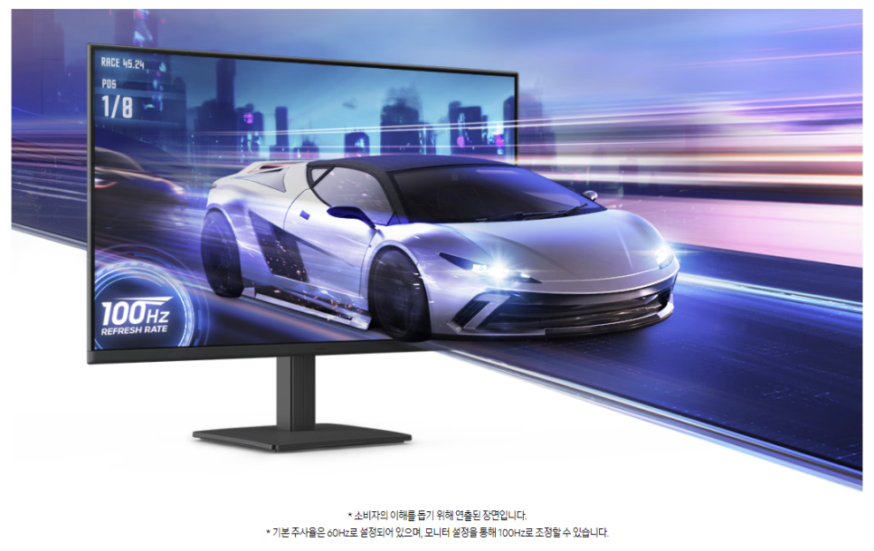 100Hz 주사율은 이미지 잔상이나 픽셀 경계가 흐려지는 현상을 줄여줍니다.
