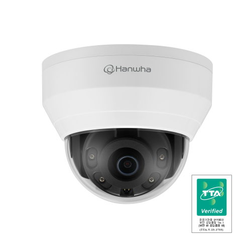 • 1/2.8형 5메가픽셀 CMOS 채용 • 최대 30fps@5메가픽셀 (2592 x 1944) • 화각(H): 104.7° / 2.8mm 고정 초점 렌즈 • H.265, H.264, MJPEG 코덱 지원 • 복도 뷰 기능 (90° / 270° 회전) • 렌즈 왜곡 보정 기능 (LDC) • WiseStreamII 지원 • 최저조도 0Lux (IR LED On) • Day & Night (ICR), WDR (120dB) • microSD/SDHC/SDXC 메모리 카드 슬롯 • 공공기관용 IP카메라 보안 성능품질 TTA Verified Ver.1 인증 획득